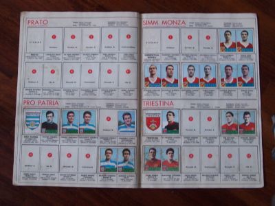Cosenza: Fontana/Baston; Thermes/Gualtieri; Marmiroli/Dalla Pietra Foggia: stemma/Moschioni; Corradi/Valadè; Faleo/Oltramari; Gambino/Nocera; Lazzotti/Patino Lecco: stemma/Annibale Napoli: Corelli/Bolzoni Padova, Palermo, Parma, Potenza dell'album del 63-64 figurine mancanti: Padova: stemma/Bazzoni; Beretta/Abbatini (di Beretta inserita figurina di altra annata; di Barbolini esiste una seconda figurina di altra annata non attaccata) Palermo: Stemma/Bandoni; Adorni/Giorgi; Malavasi/Maestri Parma: stemma/Uccelli; Zurlini/Corradi; Rancati/Bernasconi Potenza: Viacava/Bonacchi Prato, Pro Patria, Simm. Monza, Triestina dell'album del 63-64 figurine mancanti: Prato: stemma/Liberalato; De Dura/Galeotti; Prini/Rizza; Moradei/Veneranda; Ruggiero/Frassinelli; Taccola/Azzali Pro Patria: Rondanini/Signorelli; Crespi/Regalia; Calloni/Muzzio; (di Signorelli esiste figurina di altra annata) Simm. Monza: stemma/Rigamonti; Melonari/Osterman Triestina: Frigeri/Vitali; Dalio/Orlando; Porro/Rancati