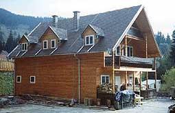 e planimetria personalizzate. Siamo in grado pertanto di fornire chalet per tutte le esigenze. Abbiamo realizzato abitazioni, attività commerciale, dependance, case vacanza, studi, negozi. Illustrateci le vostre esigenze! In questa pagina vengono illustrati, con delle immagini, alcune delle molteplici realizzazioni possibili. Il calore del legno naturale diviene composizione vivibile all'interno ed all'esterno, in un progetto edilizio realizzabile con minore spesa della struttura in cemento armato o in mattoni, con una maggiore rapidità, un più organico inserimento nell'ambiente. La casa sarà parte integrante della zona in cui viene edificata: il tetto, le pareti, il pavimento, i rivestimenti, i divisori, tutto sarà di un unico materiale, antico come l'uomo e amico: il legno. Dati tecnici delle nostre costruzioni. |
