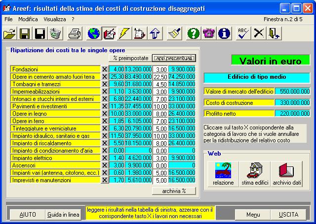 AREEFprogramma per la valutazione di aree fabbricabili e di costi di edifici |