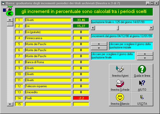 - Con la finestra che fornisce gli incrementi periodici si può valutare dove conviene concentrare la propria attenzione e dove rimuoverla. - I bilanci mensili, annuali e pluriennali danno la concreta indicazione sulla bontà degli investimenti effettuati e sugli utili conseguiti. - Per chi opera con il trading