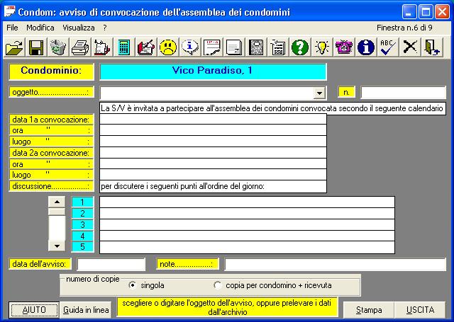 la convocazione dell'assemblea, con la stampa automatica per tutti i condomini.