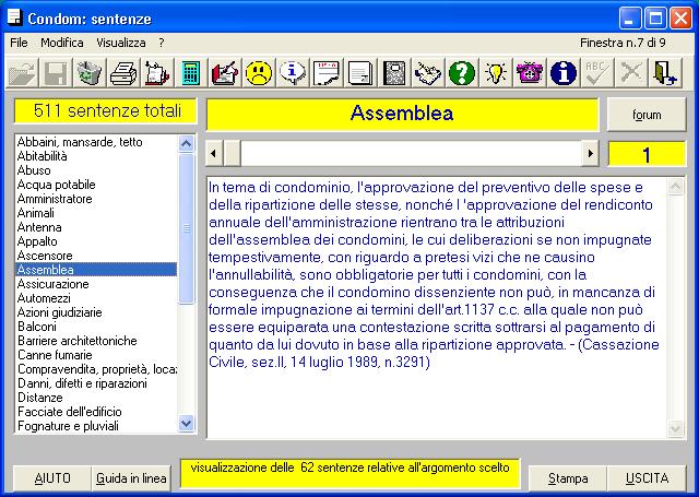 per le tabelle millesimali. Si possono inoltre stampare le sentenze maggiormente