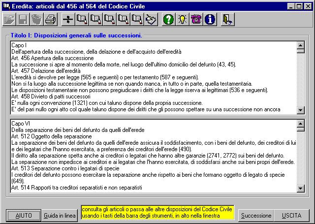 una delle finestre che visualizzano gli articoli riguardanti le successioni.