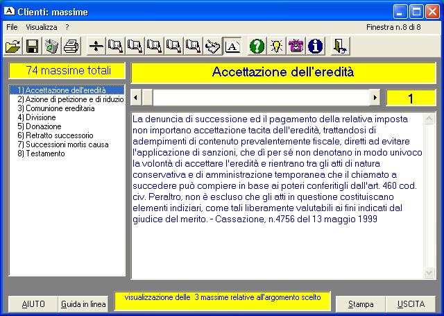 eredità, oppure, nelle altre finestre, tutta la normativa relativa
