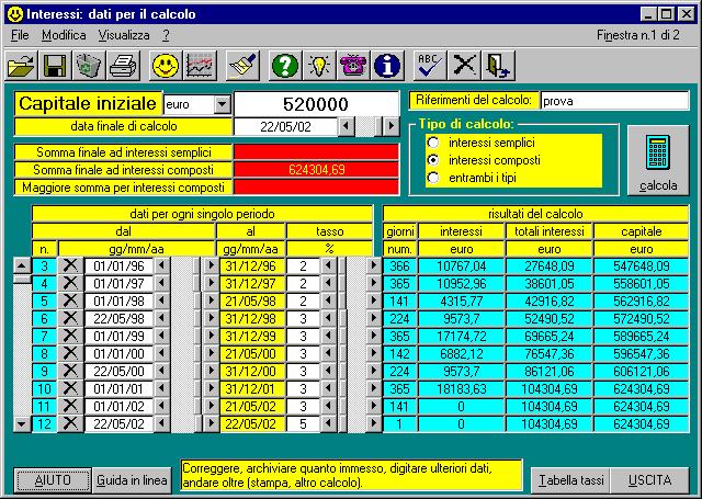 successivo), ed ogni tasso. Solamente il capitale iniziale ed il riferimento