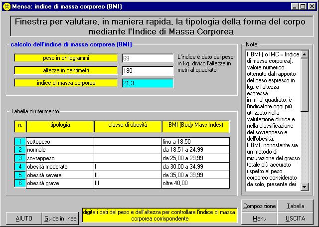MENSA: basta inserire pochi dati e leggere l'Indice di Massa Corporea che
