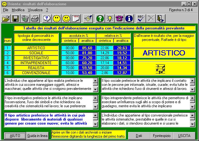 1 per la relazione da stampare. Inoltre vi sono altre finestre: una d'ingresso
