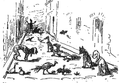 In mezzo a questa folla di accattoni e di poveri vergognosi passavano di tanto in tanto alcune carrozze signorili con dentro o qualche volpe, o qualche gazza ladra o qualche uccellaccio di rapina.