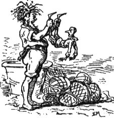 Capitolo 28Pinocchio corre pericolo di essere fritto in padella come un pesce.Durante quella corsa disperata, vi fu un momento terribile, un momento in cui Pinocchio si credé perduto: perché bisogna sapere che Alidoro (era questo il nome del can-mastino) a furia di correre e correre, l'aveva quasi raggiunto.Basti dire che il burattino sentiva dietro di sé, alla distanza d'un palmo, l'ansare affannoso di quella bestiaccia e ne sentiva perfino la vampa calda delle fiatate. Per buona fortuna la spiaggia era oramai vicina e il mare si vedeva lì a pochi passi. Appena fu sulla spiaggia, il burattino spiccò un bellissimo salto, come avrebbe potuto fare un ranocchio, e andò a cascare in mezzo all'acqua. Alidoro invece voleva fermarsi; ma trasportato dall'impeto della corsa, entrò nell'acqua anche lui. E quel disgraziato non sapeva nuotare; per cui cominciò subito ad annaspare colle zampe per reggersi a galla: ma più annaspava e più andava col capo sott'acqua. Quando torno a rimettere il capo fuori, il povero cane aveva gli occhi impauriti e stralunati, e, abbaiando, gridava. - Affogo! Affogo! - Crepa! - gli rispose Pinocchio da lontano, il quale si vedeva oramai sicuro da ogni pericolo. - Aiutami, Pinocchio mio!... salvami dalla morte!... A quelle grida strazianti, il burattino, che in fondo aveva un cuore eccellente, si mosse a compassione, e voltosi al cane gli disse: - Ma se io ti aiuto a salvarti, mi prometti di non darmi più noia e di non corrermi dietro? - Te lo prometto! te lo prometto! Spicciati per carità, perché se indugi un altro mezzo minuto, son bell'e morto. Pinocchio esitò un poco: ma poi ricordandosi che il suo babbo gli aveva detto tante volte che a fare una buona azione non ci si scapita mai, andò nuotando a raggiungere Alidoro, e, presolo per la coda con tutte e due le mani, lo portò sano e salvo sulla rena asciutta del lido. Il povero cane non si reggeva più in piedi. Aveva bevuto, senza volerlo, tant'acqua salata, che era gonfiato come un pallone. Per altro il burattino, non volendo fare a fidarsi troppo, stimò cosa prudente di gettarsi novamente in mare; e, allontanandosi dalla spiaggia, gridò all'amico salvato: - Addio, Alidoro, fai buon viaggio e tanti saluti a casa. - Addio, Pinocchio, - rispose il cane; - mille grazie di avermi liberato dalla morte. Tu mi hai fatto un gran servizio: e in questo mondo quel che è fatto è reso. Se càpita l'occasione, ci riparleremo. Pinocchio seguitò a nuotare, tenendosi sempre vicino alla terra. Finalmente gli parve di esser giunto in un luogo sicuro; e dando un occhiata alla spiaggia, vide sugli scogli una specie di grotta, dalla quale usciva un lunghissimo pennacchio di fumo. - In quella grotta, - disse allora fra sé, - ci deve essere del fuoco. Tanto meglio! Anderò a rasciugarmi e a riscaldarmi, e poi?... e poi sarà quel che sarà. Presa questa risoluzione, si avvicinò alla scogliera; ma quando fu lì per arrampicarsi, sentì qualche cosa sotto l'acqua che saliva, saliva, saliva e lo portava per aria. Tentò subito di fuggire, ma oramai era tardi, perché con sua grandissima maraviglia si trovò rinchiuso dentro a una grossa rete in mezzo a un brulichio di pesci d'ogni forma e grandezza, che scodinzolando e si dibattevano come tant'anime disperate. E nel tempo stesso vide uscire dalla grotta un pescatore così brutto, ma tanto brutto, che pareva un mostro marino. Invece di capelli aveva sulla testa un cespuglio foltissimo di erba verde; verde era la pelle del suo corpo, verdi gli occhi, verde la barba lunghissima, che gli scendeva fin quaggiù. Pareva un grosso ramarro ritto su i piedi di dietro. ![]() Quando il pescatore ebbe tirata fuori la rete dal mare, gridò tutto contento: - Provvidenza benedetta! Anch'oggi potrò fare una bella scorpacciata di pesce! - Manco male, che io non sono un pesce! - disse Pinocchio dentro di sé, ripigliando un po' di coraggio. La rete piena di pesci fu portata dentro la grotta, una grotta buia e affumicata, in mezzo alla quale friggeva una gran padella d'olio, che mandava un odorino di moccolaia da mozzare il respiro. - Ora vediamo un po' che pesci abbiamo presi! - disse il pescatore verde; e ficcando nella rete una manona così spropositata, che pareva una pala da fornai, tirò fuori una manciata di triglie. - Buone queste triglie! - disse, guardandole e annusandole con compiacenza. E dopo averle annusate, le scaraventò in una conca senz'acqua. Poi ripeté più volte la solita operazione; e via via che cavava fuori gli altri pesci, sentiva venirsi l'acquolina in bocca e gongolando diceva: - Buoni questi naselli!... - Squisiti questi muggini!... - Deliziose queste sogliole!... - Prelibati questi ragnotti!... - Carine queste acciughe col capo!... Come potete immaginarvelo, i naselli, i muggini, le sogliole, i ragnotti e le acciughe, andarono tutti alla rinfusa nella conca, a tener compagnia alle triglie. L'ultimo che restò nella rete fu Pinocchio. Appena il pescatore l'ebbe cavato fuori, sgranò dalla maraviglia i suoi occhioni verdi, gridando quasi impaurito: - Che razza di pesce è questo? Dei pesci fatti a questo modo non mi ricordo di averne mai mangiati! E tornò a guardarlo attentamente, e dopo averlo guardato ben bene per ogni verso, finì col dire: - Ho già capito: dev'essere un granchio di mare. Allora Pinocchio mortificato di sentirsi scambiare per un granchio, disse con accento risentito: - Ma che granchio e non granchio? Guardi come lei mi tratta! Io per sua regola sono un burattino. - Un burattino? - replicò il pescatore. - Dico la verità, il pesce burattino è per me un pesce nuovo! Meglio così! ti mangerò più volentieri. - Mangiarmi? ma la vuol capire che io non sono un pesce? O non sente che parlo, e ragiono come lei? - È verissimo, - soggiunse il pescatore, - e siccome vedo che sei un pesce, che hai la fortuna di parlare e di ragionare, come me, così voglio usarti anch'io i dovuti riguardi. - E questi riguardi sarebbero?... - In segno di amicizia e 