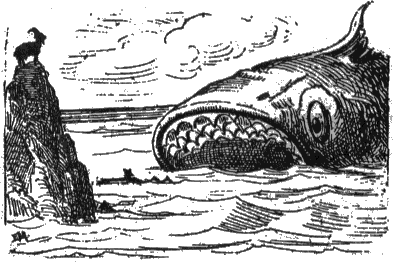 Lascio pensare a voi se il cuore del povero Pinocchio cominciò a battere più forte! Raddoppiando di forza e di energia si diè a nuotare verso lo scoglio bianco: ed era già a mezza strada, quando ecco uscir fuori dall'acqua e venirgli incontro una orribile testa di mostro marino, con la bocca spalancata, come una voragine, e tre filari di zanne che avrebbero fatto paura anche a vederle dipinte.