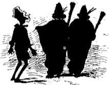 Si voltò a guardare e vide nel buio due figuracce nere tutte imbacuccate in due sacchi da carbone, le quali correvano dietro a lui a salti e in punta di piedi, come se fossero due fantasmi.