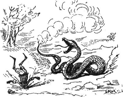 Aspettò un'ora; due ore; tre ore; ma il Serpente era sempre là, e, anche di lontano, si vedeva il rosseggiare de' suoi occhi di fuoco e la colonna di fumo che gli usciva dalla punta della coda.