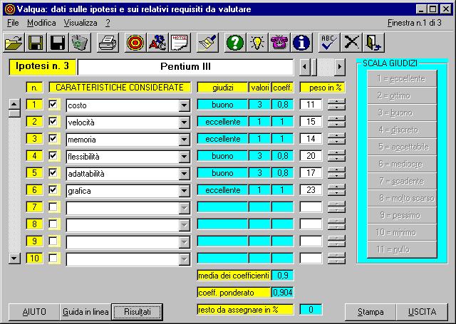 scegliere i giudizi da una scala di valori preimpostati ed il peso che