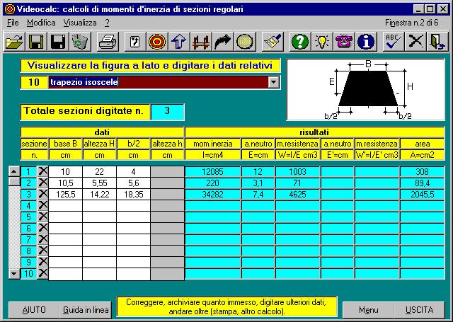 caso si tratta del calcolo relativo alle sezioni. Per esse, inserendo i